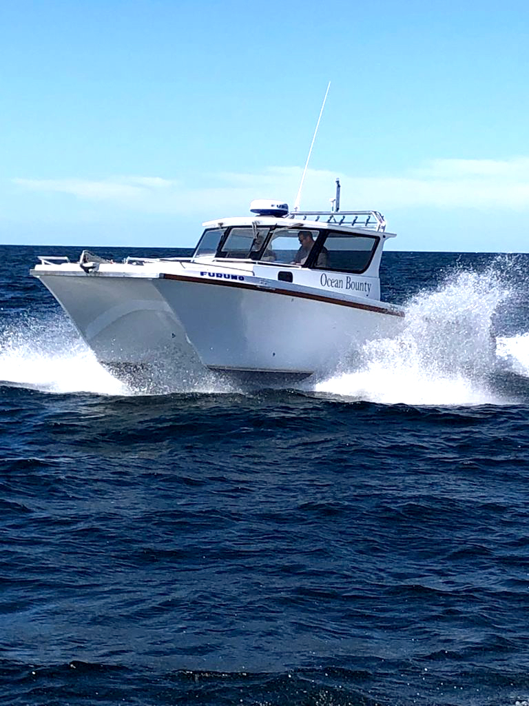 Our 30 ft Sports fishing boat is custom built catamaran designed for the Cape waters and built to the highest safety standards. The vessel is stable, fitted with a comfortable cabin and a full walk around layout, providing a spacious deck for fishing. Equipped with state-of-the-art Furuno marine electronics and the latest, top of the range fishing tackle and equipment is used for your maximum comfort, enjoyment and safety.
